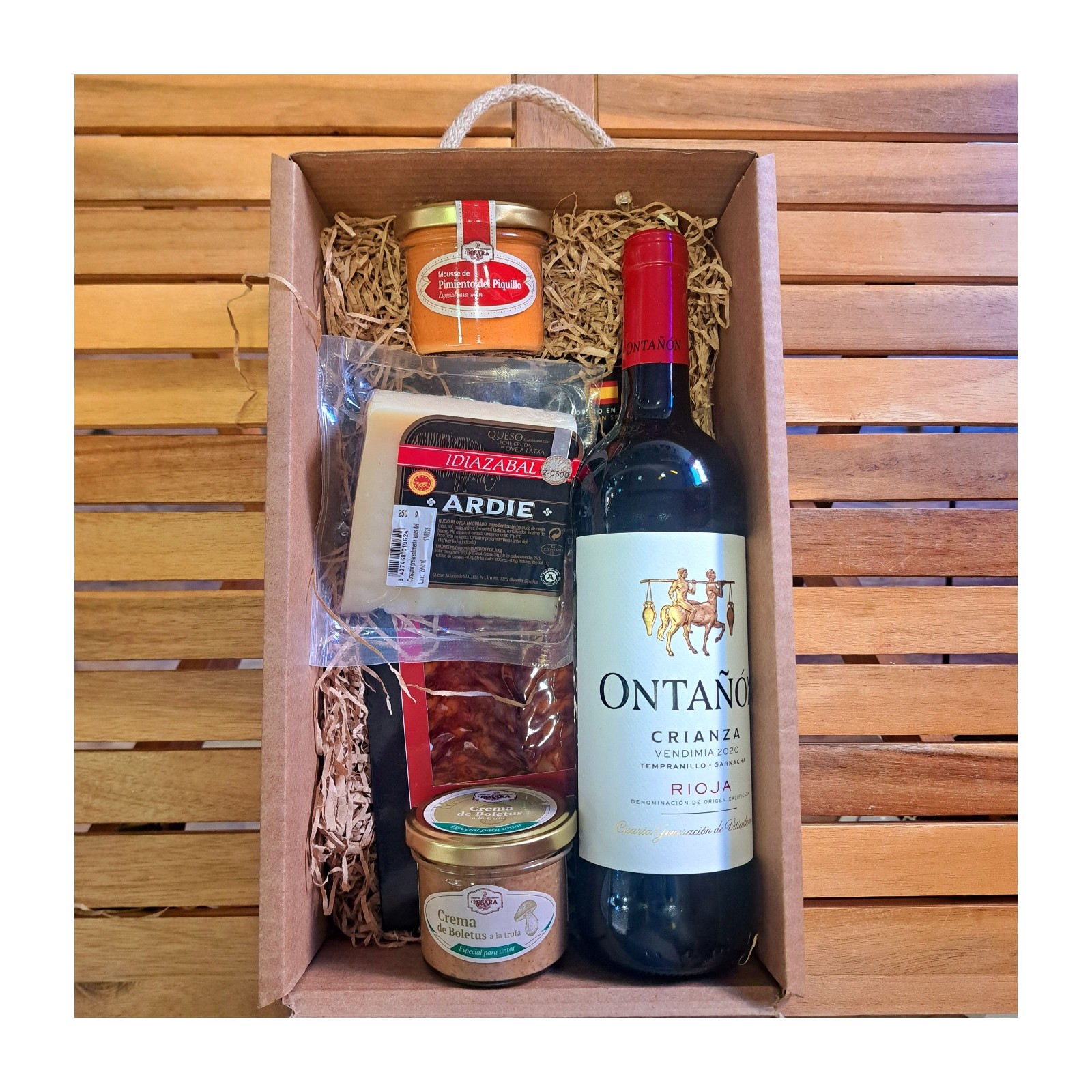 Un lote que combina la elegancia del vino Rioja Ontañón con el sabor auténtico de productos elaborados artesanalmente. Ideal para regalar o disfrutar en buena compañía.