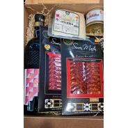 Un estuche gourmet con vino tinto navarro, embutidos ibéricos, queso Roncal y paté artesano. Tradición, sabor y calidad en un solo regalo.